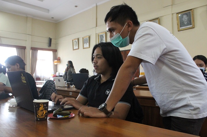 A BASAbali Wiki team member helps a new user to access the basabaliwiki.org virtual library / Iko Amadeus